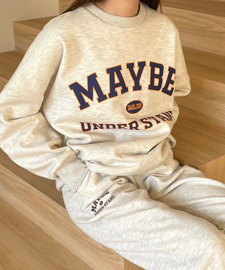Maybe Understand Authentic Logo Sweat Set Oatmeal